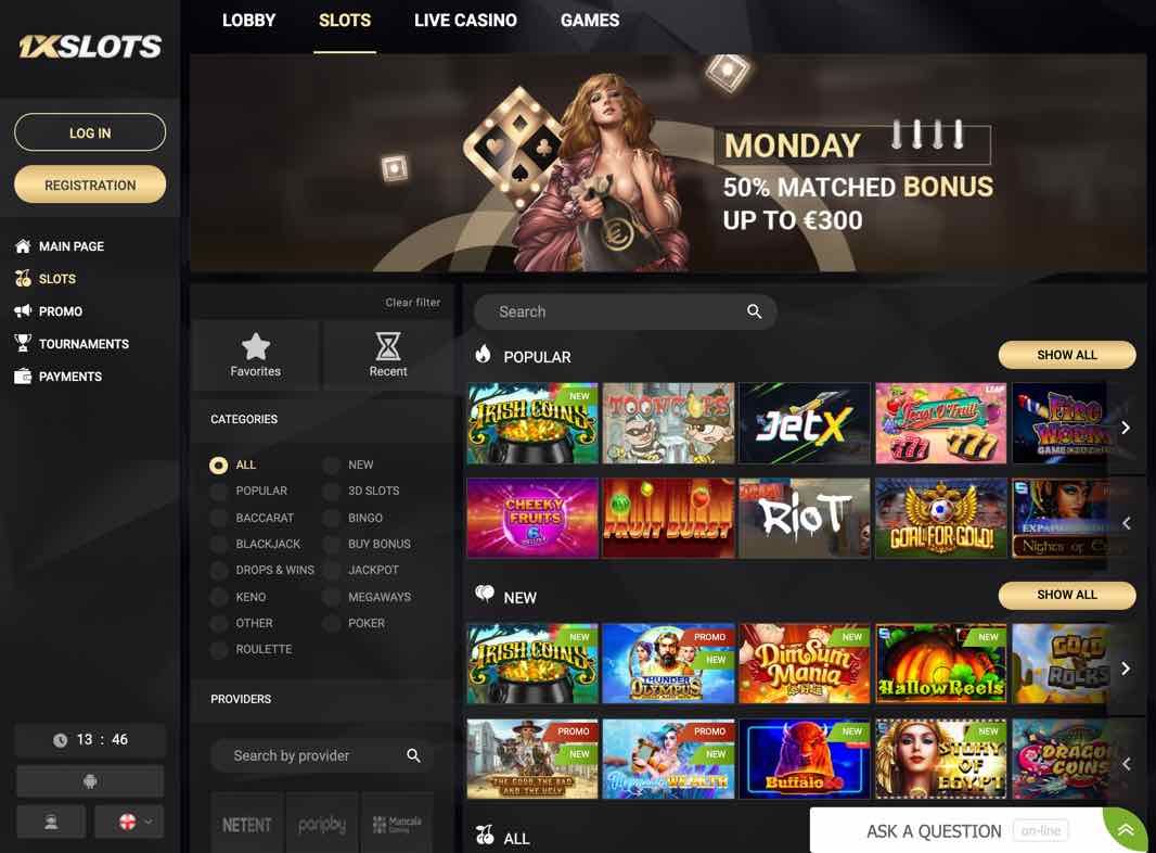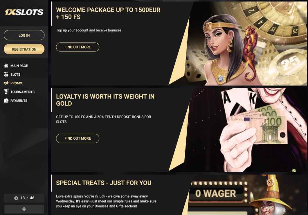 Die Website von 1xSlots Casino wurde für den Benutzer konzipiert. Wenn Sie die Homepage laden, können Sie praktisch mit einem Klick auf alles zugreifen, was das Casino bietet. Dazu gehören Informationen zu Spielen, Werbeaktionen, Turnieren und Zahlungen.