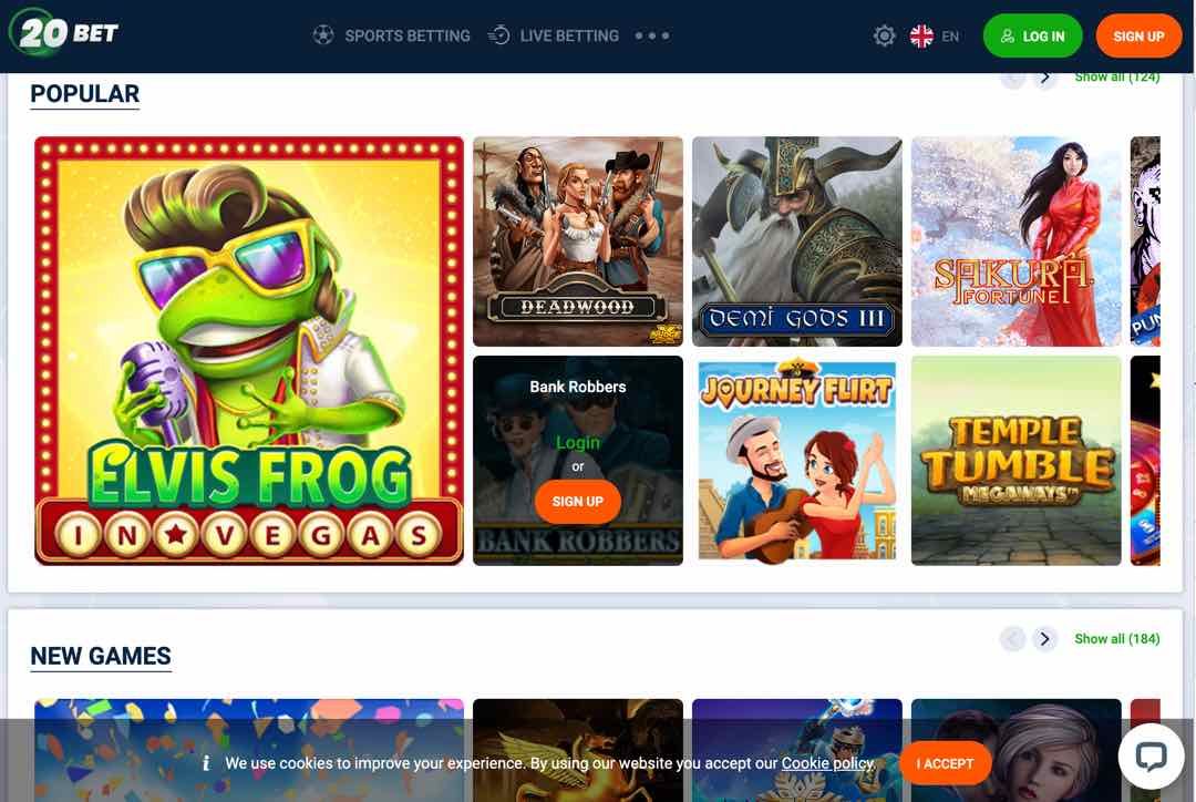 Es gibt eine ganze Reihe von 20Bet Casino Boni zu genießen. Neue Spieler können das Willkommensbonusangebot nutzen. Dies umfasst tatsächlich Ihre ersten beiden Einzahlungen und besteht aus einer Mischung aus Freispielen und einem Einzahlungsbonus. Um diesen Bonus in Anspruch zu nehmen, müssen sich die Spieler zuerst registrieren und ein Konto erstellen.
