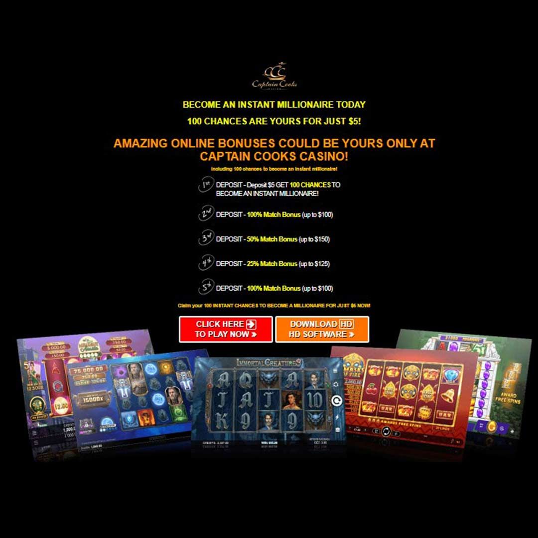 Wenn es um Boni geht, liegt es in der Verantwortung des Casinos, sich von der Masse abzuheben, insbesondere wenn es neue Leute zum Beitritt ermutigen möchte. So wie es aussieht, bietet Captain Cooks Casino einen ziemlich ungewöhnlichen Willkommensbonus in Form von 100 Möglichkeiten, viel Geld zu gewinnen - im Wesentlichen handelt es sich um eine Reihe von Freispielen, mit denen Sie bei jedem der verfügbaren Jackpot-Spiele spielen können.