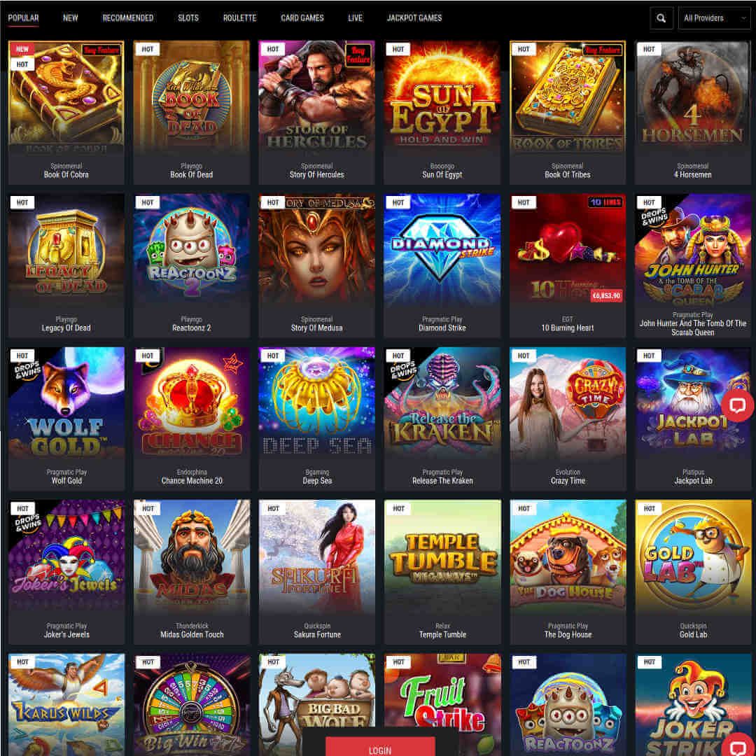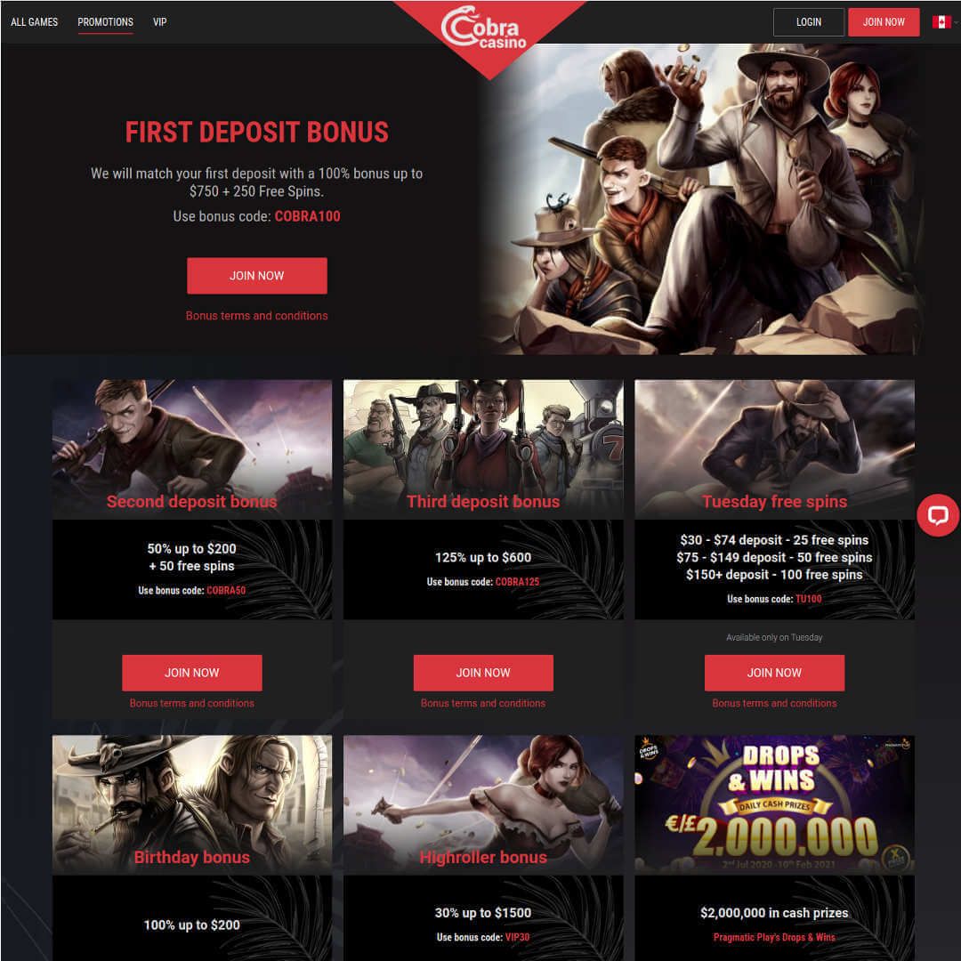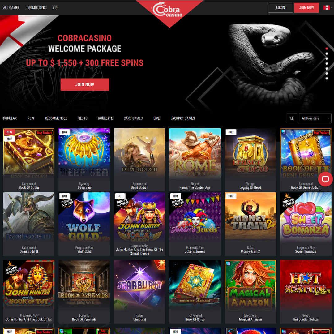 Eines der wichtigsten Dinge, wenn Sie auf der Homepage ankommen, ist das Cobra Casino Bonusangebot. Dies scrollt deutlich vorbei, damit Sie sehen können, was auf Lager ist. Weitere Hauptfunktionen, auf die von dieser Hauptseite aus zugegriffen werden kann, sind die Spiele, zusätzliche Werbeaktionen und natürlich der Support.