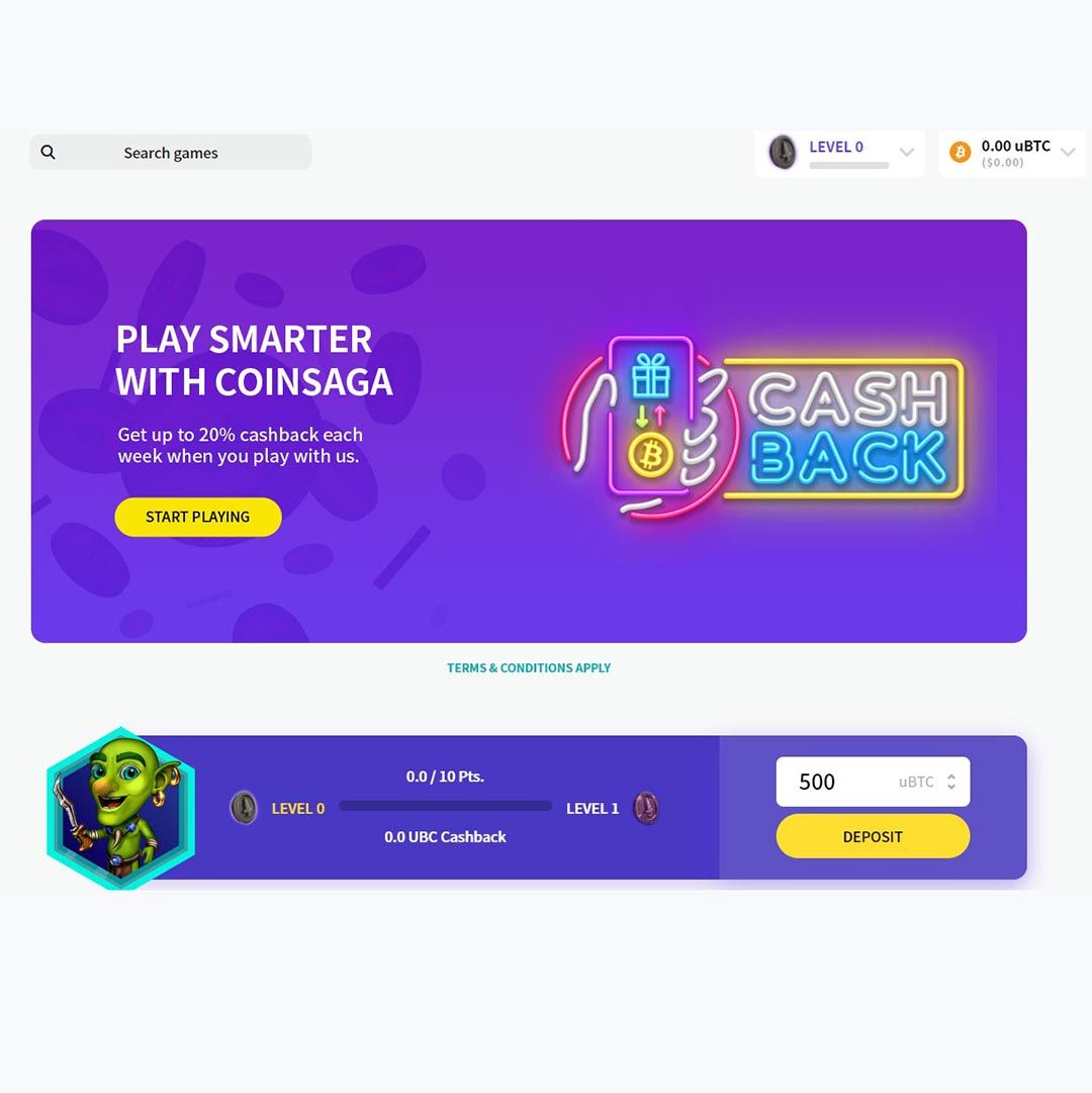 Dieses aufregende Casino ist sehr einfach zu erreichen und zu spielen. Mit seinem blau-weißen Farbschema und den einfachen Menüs oben ist alles navigierbar und intuitiv. Das Hauptbanner zeigt auch sowohl das Coinsaga-Willkommenspaket als auch den Coinsaga-Cashback, sodass die Spieler leicht sehen können, welche Optionen verfügbar sind.