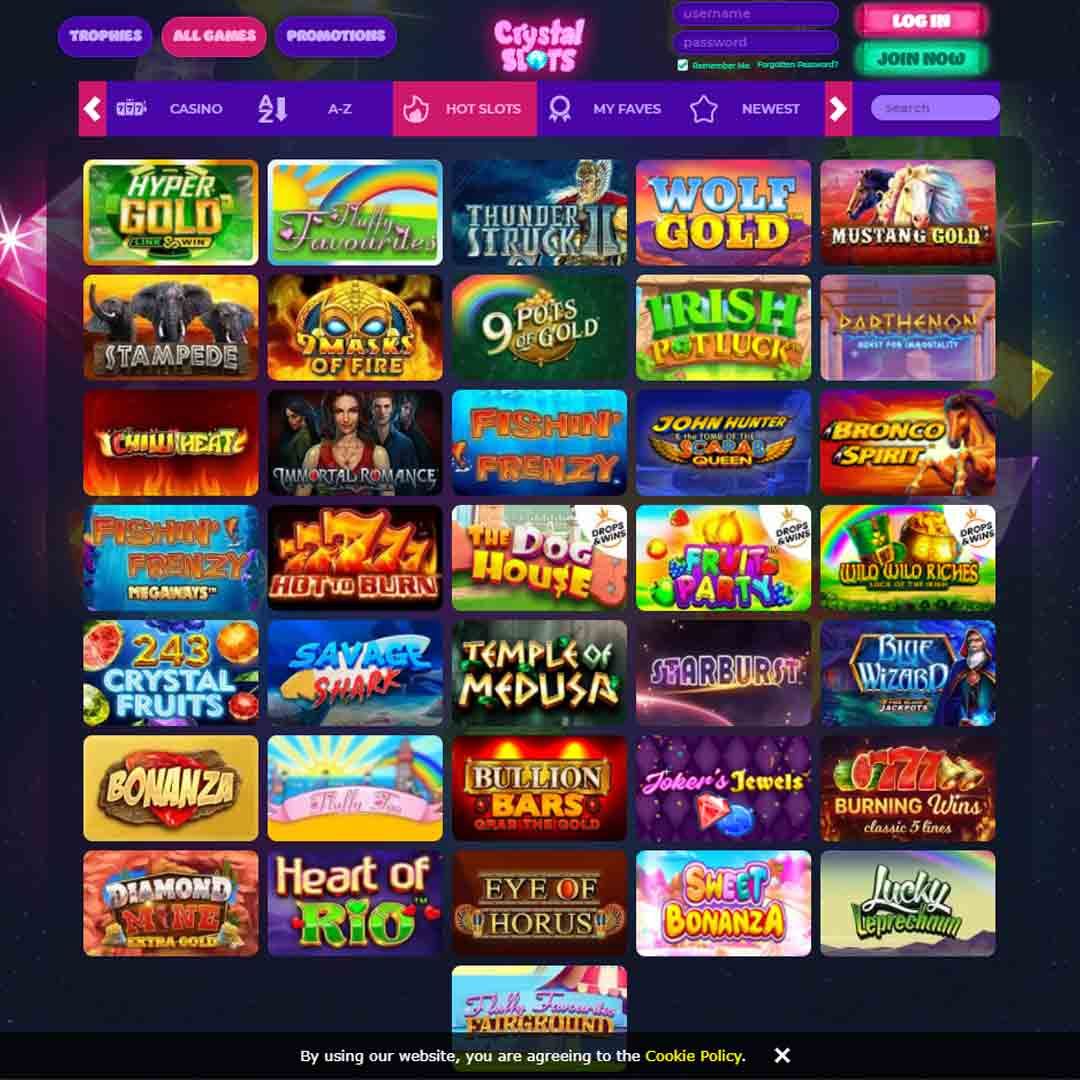 Beim Besuch der offiziellen Website von Crystal Slots können Spieler aufgrund der intuitiven Benutzeroberfläche und des praktischen Menüs mühelos navigieren. Die Widgets zum Anmelden oder Registrieren befinden sich rechts, während sich die Abschnitte zum Auffinden der Trophäen, Spiele und Werbeaktionen links befinden. Die Lobby umfasst ausgewählte Slots. Der Abschnitt mit Spielen verfügt über verschiedene Filter zum Sortieren der Software. Grundlegende Dinge, einschließlich FAQ, AGB und Zertifikate, finden Sie in der Fußzeile.