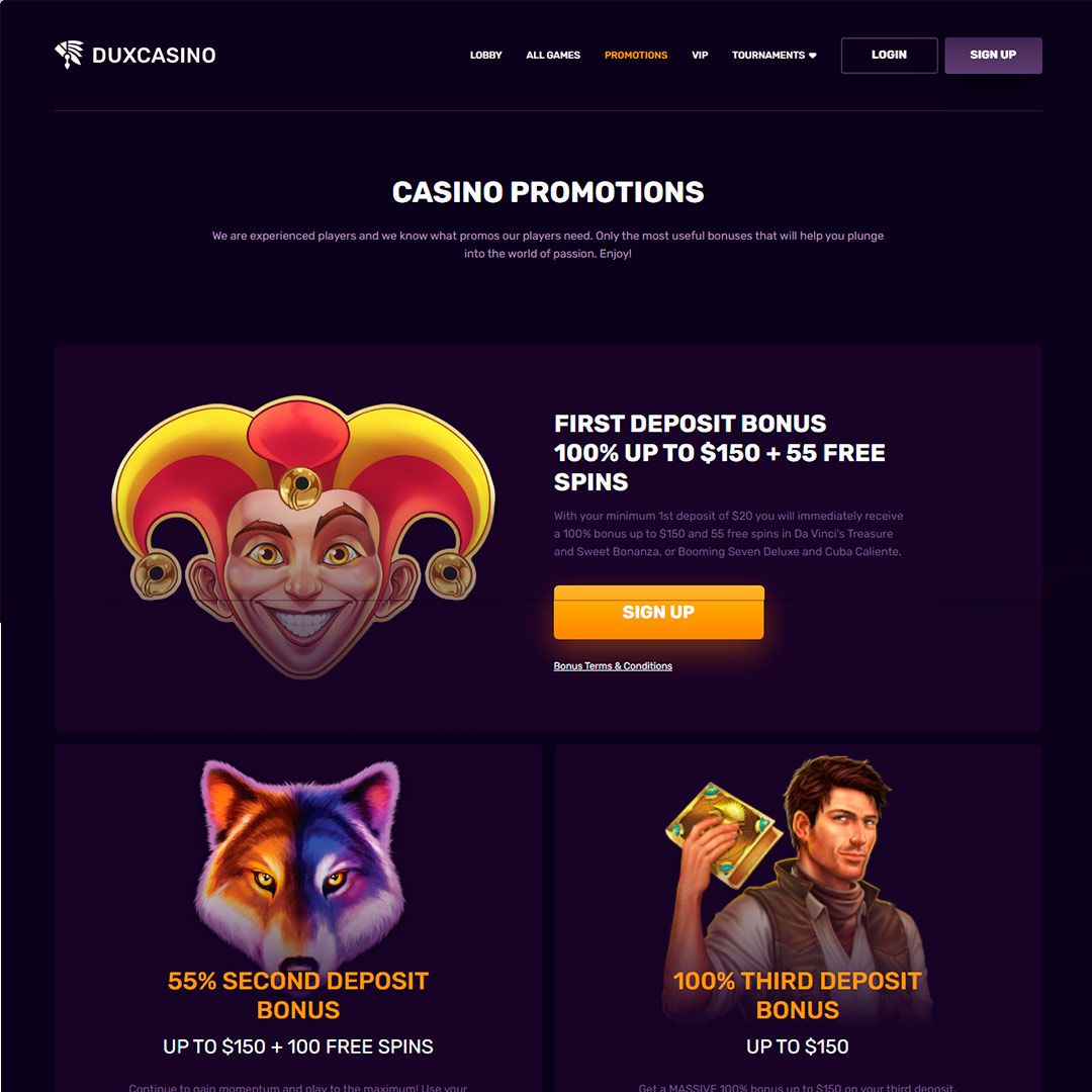 Dieses Casino ist groß darin, Spieler zu belohnen. Während einige Boni spielspezifisch sind, einschließlich Freispiele, bietet das Casino verschiedene andere Werbeaktionen an. Am auffälligsten ist natürlich der Willkommensbonus, bei dem Sie 100% Ihrer ersten Einzahlung für 100 € oder den Gegenwert in zulässigen Währungen erhalten. Außerdem hat der Bonus einen Anhang von 55 Freispielen. Wenn Sie die zweite und dritte Einzahlung tätigen, gibt es weitere Boni.