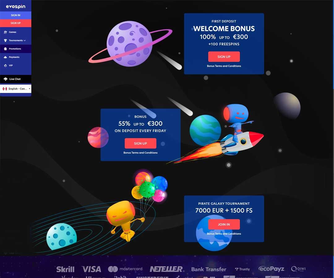 Eines der besten Dinge beim Spielen in einem Online-Casino sind die verfügbaren Boni. Glücklicherweise hält sich das Evospin Casino daran und bietet deutschen Spielern einen ziemlich beeindruckenden Willkommensbonus. Hier können die Spieler nach ihrer ersten Einzahlung einen satten Einzahlungsbonus sowie Freispiele erwarten.