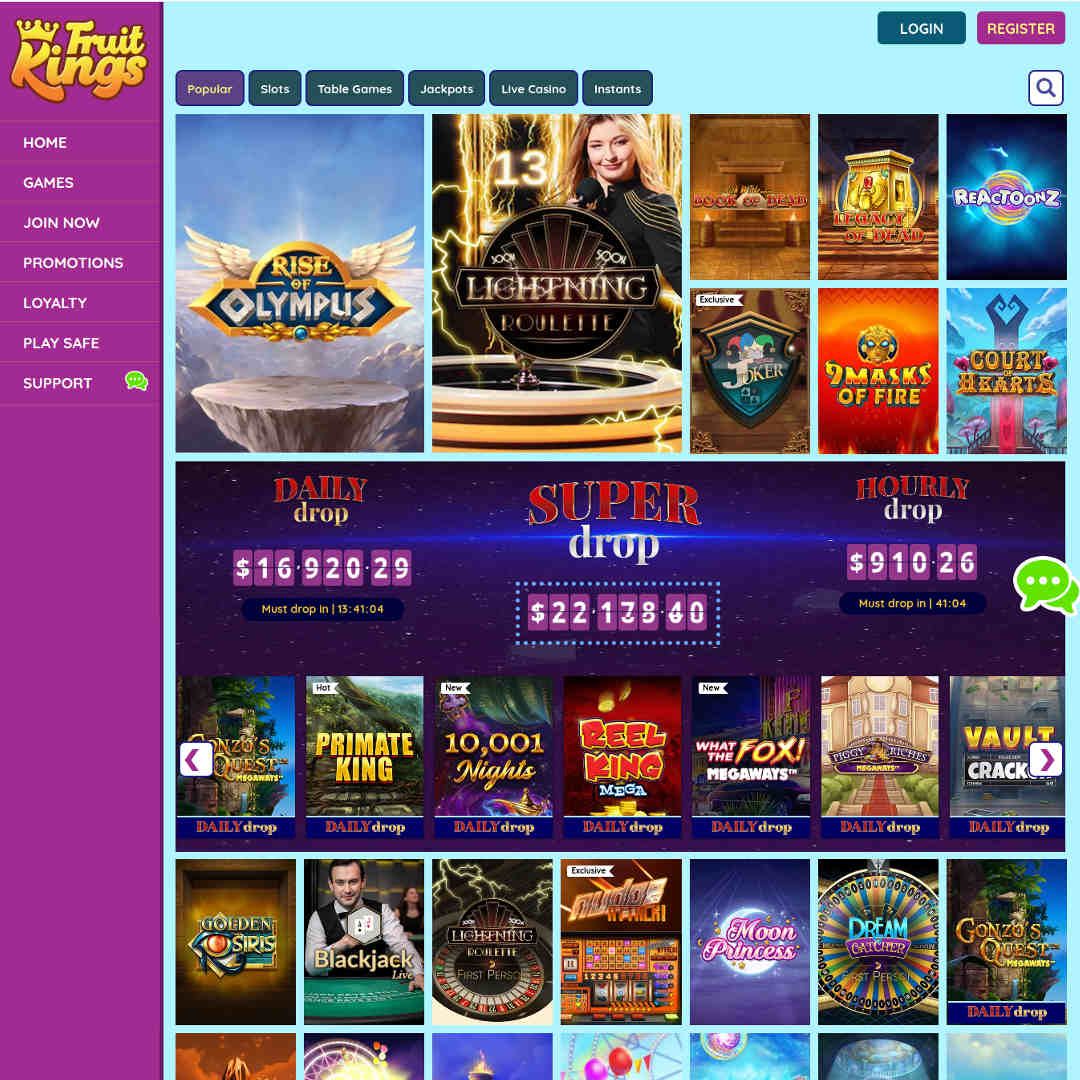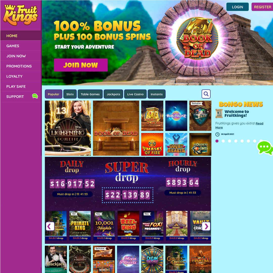 Fruit Kings Casino ist eine helle, lebendige Website zum Thema Dschungel, die neben Boni auch die neuesten Spiele bietet. Dieser Fruit Kings Casino-Test wirft einen Blick auf all die verschiedenen Funktionen, die diese Seite zu einer spielenswerten machen. Dazu gehören Zahlungsoptionen, Spiele und Sicherheit.