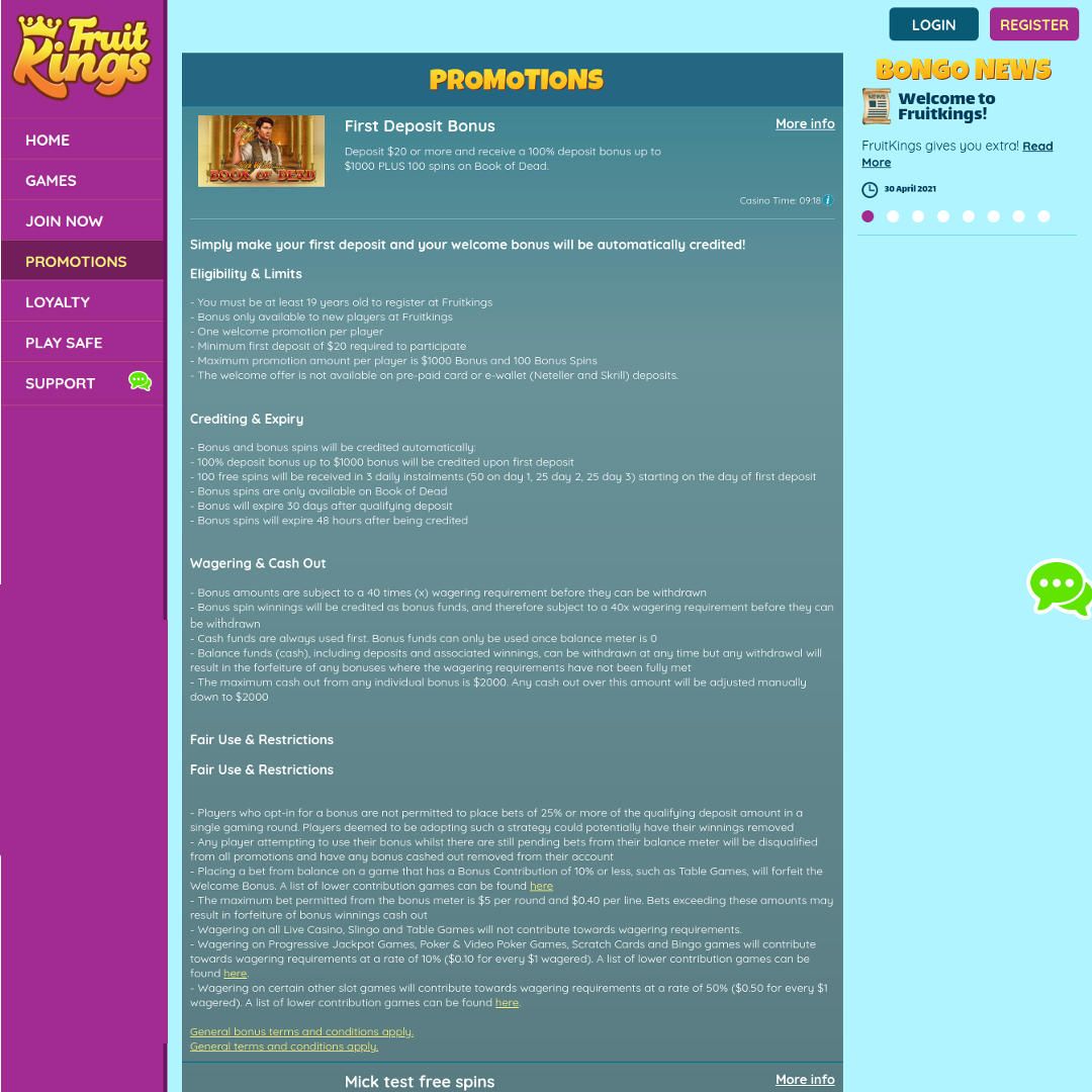 Das Navigieren auf dieser Website ist sehr einfach - das Layout ist einfach und es gibt praktische Menüs auf der linken Seite der Homepage. Darüber hinaus gibt es eine mobile Fruit Kings Casino-Version der Website, die auf ähnliche Weise für eine einfache Verwendung ausgelegt ist.