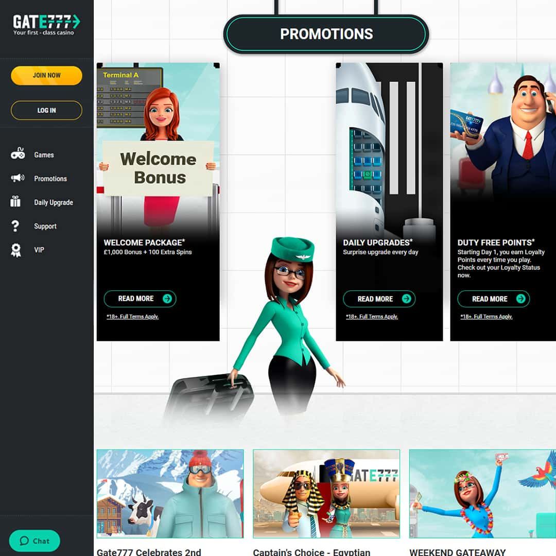 Gate777 Casino bezeichnet sich selbst als erstklassiges Casino und hat ein lustiges Flughafentor-Thema mit vielen Charakteren, die herumsitzen und hoffentlich darauf warten, einen Gewinnflug zu erwischen! Die Farbpalette hier ist mit Weiß, Schwarz und Grau extrem einfach und Sie werden kein Problem damit haben, sich auf der Website zurechtzufinden, um Ihre Lieblingsspiele zu finden, da diese in der Spielenavigationsleiste eindeutig als Top, Slots, Tisch, Jackpots gekennzeichnet sind, Live-Casino, Alle Spiele und Spieleanbieter.