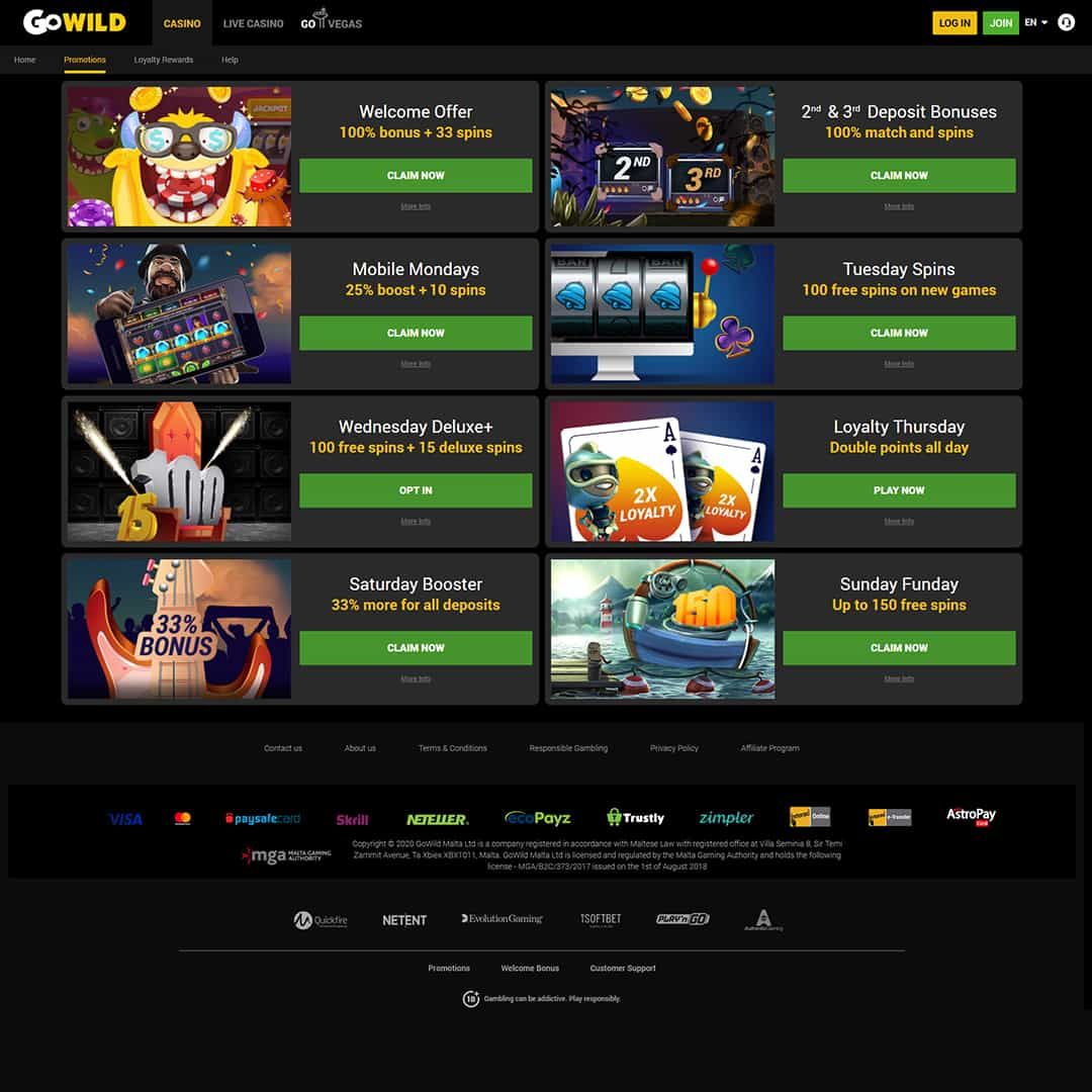 Ja, es gibt ein Treueprogramm im GoWild Casino. Sobald Sie beitreten und mit dem Einzahlen und Spielen beginnen, sammeln Sie GoWild-Punkte. Wenn sich diese Punkte ansammeln, werden Sie durch die Level aufsteigen, wobei Sie umso mehr Vorteile erwarten können, je höher Sie klettern. Es gibt 4 Levels, um durchzukommen – Wild Bronze, Wild Silver, Wild Gold und Wild Platinum.