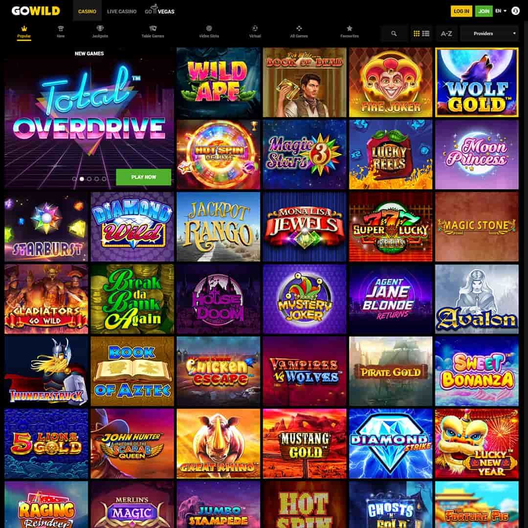 GoWild ist ein lustiges und lebendiges Casino mit einem Logo, das animiert ist und beim Besuch der Website auf Sie herausspringt. Das Farbschema ist hier einfach, da es schwarz, Weiß und Gelb ist, aber dies erleichtert die Navigation auf der Website und die Werbegrafiken auf der Homepage sind sehr hell und farbenfroh. Spiele werden hier gut präsentiert und Sie können Ihre Suche eingrenzen, indem Sie sie nach Titel, Spieltyp oder Anbieter anordnen. Das mobile Spielerlebnis ist genauso gut für die Benutzerfreundlichkeit und funktioniert ähnlich wie die Desktop-Site.