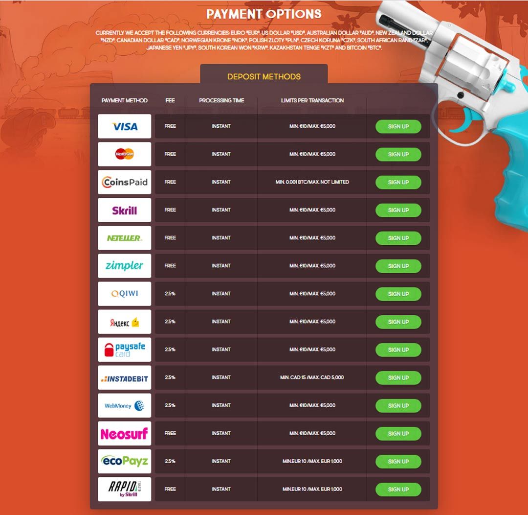 Gunsbet ist noch ein recht neues Online-Casino und seine Grafiken spiegeln dies wider, da sie alle sehr hochwertig und modern sind. Das Thema hier ist ein lustiger wilder Western und selbst wenn Sie das Casino laden, werden dem Laderad Kugeln zu einer Waffe hinzugefuМ€gt, was eine coole Note ist. Dieses Spiel hat ein schwarzes, weiГџes und rotes Farbschema, das sicher viele Spieler ansprechen wird. Es ist sehr einfach, sich zurechtzufinden, da Sie links auf Ihrem Bildschirm Registerkarten zu separaten Spielen, Werbeaktionen, dem VIP-Programm, Zahlungen und allen laufenden aufregenden Turnieren sehen. Der Spielebereich ist auch gut organisiert, um Ihre Lieblingsspiele leicht zu finden. Sie koМ€nnen die verschiedenen Registerkarten verwenden - Slots, Jackpot, Tisch- und Live-Spiele. Dann koМ€nnen Sie die Suchleiste verwenden oder Spiele nach ihrem Softwareanbieter eingrenzen, was praktisch ist.
