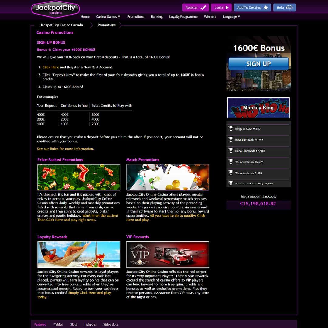 Bonusangebote von Jackpot City Casino im Jahr 2022