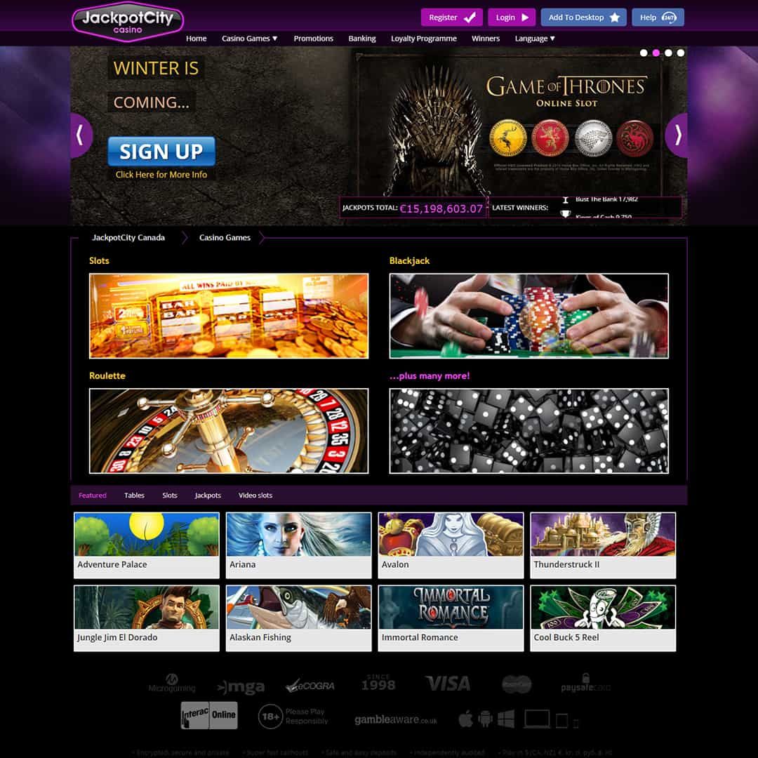 JackpotCity leistet hervorragende Arbeit bei der Bereitstellung eines praktischen und benutzerfreundlichen Layouts, unabhängig davon, ob Sie auf dem Desktop oder auf dem Handy spielen. Die Spieler werden nachts in eine lebhafte Stadt mit hellen Lichtern und einem lustigen Thema entführt. Sie werden hier leicht alle Ihre Lieblingsspiele finden, da sie in verschiedene Unterabschnitte unterteilt sind, darunter Casinospiele, Online-Slots, Online-Blackjack, Online-Roulette und Live-Dealer. Verbringen Sie weniger Zeit damit, das perfekte Casinospiel zum Spielen zu finden und haben Sie mehr Zeit zum Spielen! Es gibt auch ein weiteres Menü, in dem Sie weitere Informationen zum Treueprogramm in diesem Online-Casino, zu derzeit laufenden Werbeaktionen und zu den Bankoptionen finden, die Ihnen zur Verfügung stehen.
