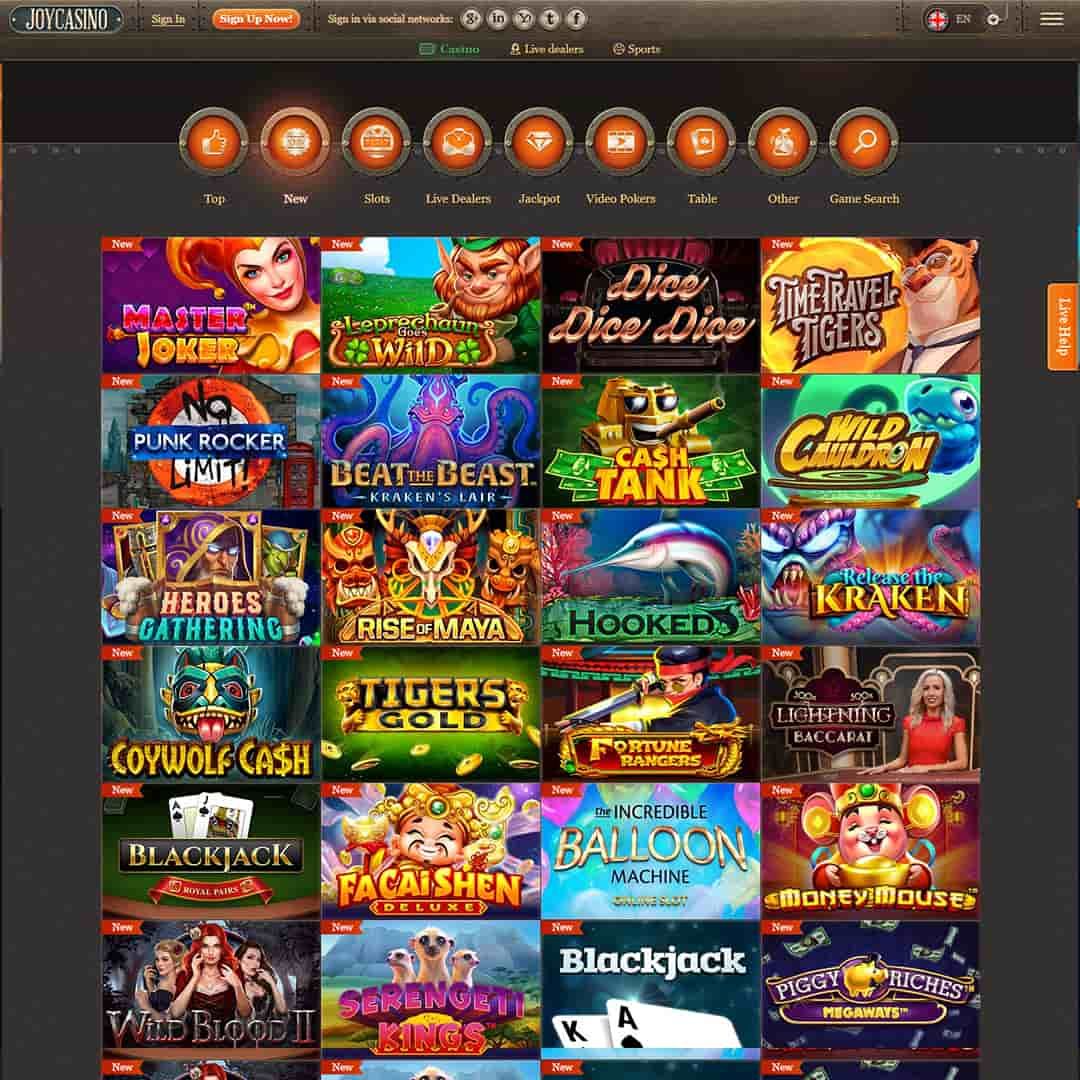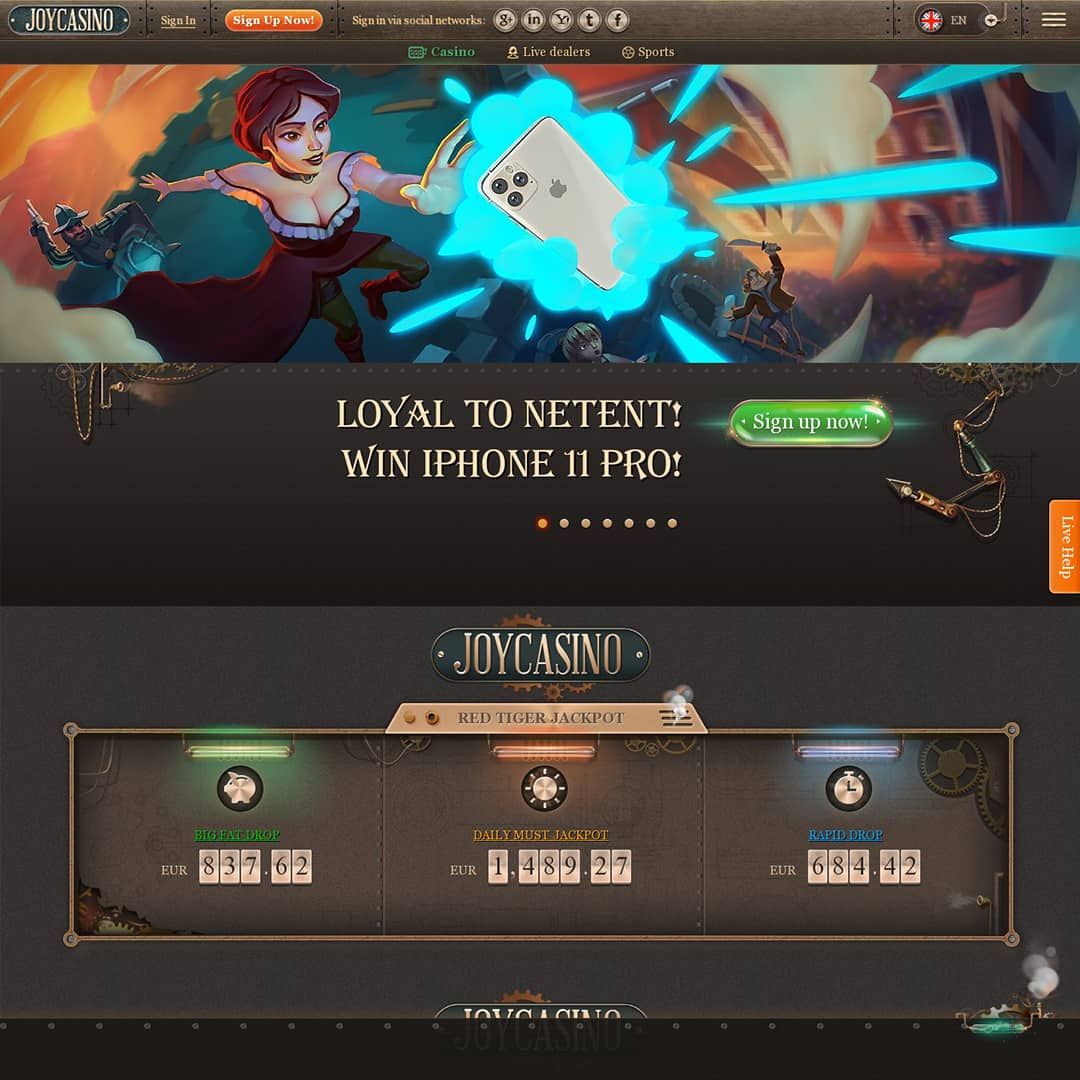Wenn Sie nach einem hellen und farbenfrohen Online-Casino suchen, ist Joycasino mit seinem dunklen, industriellen Thema wahrscheinlich nicht die richtige Option für Sie. Die Website ist übersichtlich und einfach zu bedienen und Sie finden oben auf der Seite Optionen für Casino, Live-Dealer und Sport. Dies wird dann weiter unterkategorisiert, damit Sie die Spiele finden, die Sie schnell spielen möchten. Über das Seitenmenü erhalten Sie Zugriff auf die hier verfügbaren Werbeaktionen und die Live-Chat-Option wird auf der Seite übersichtlich angezeigt. Die Website sieht auf Mobilgeräten genauso gut aus wie auf dem Desktop.