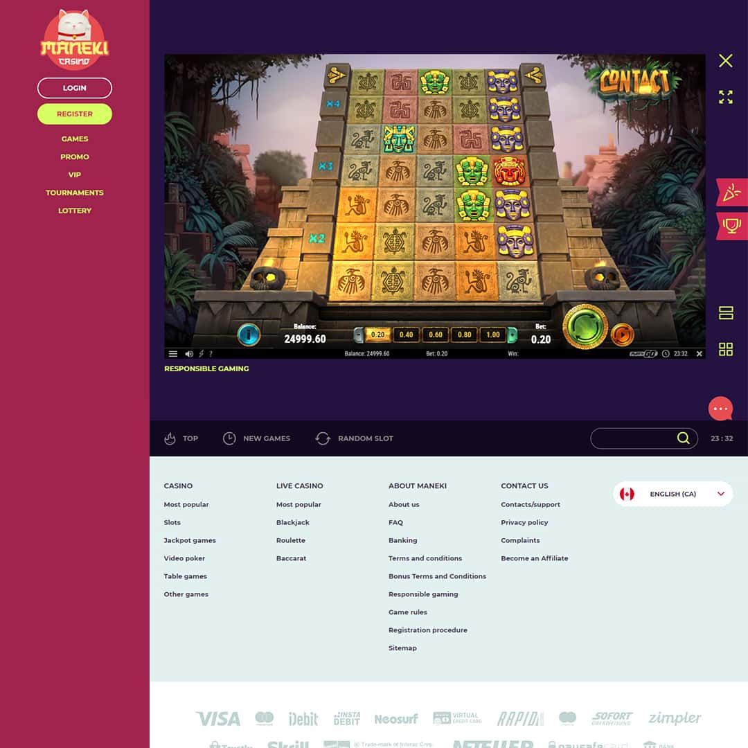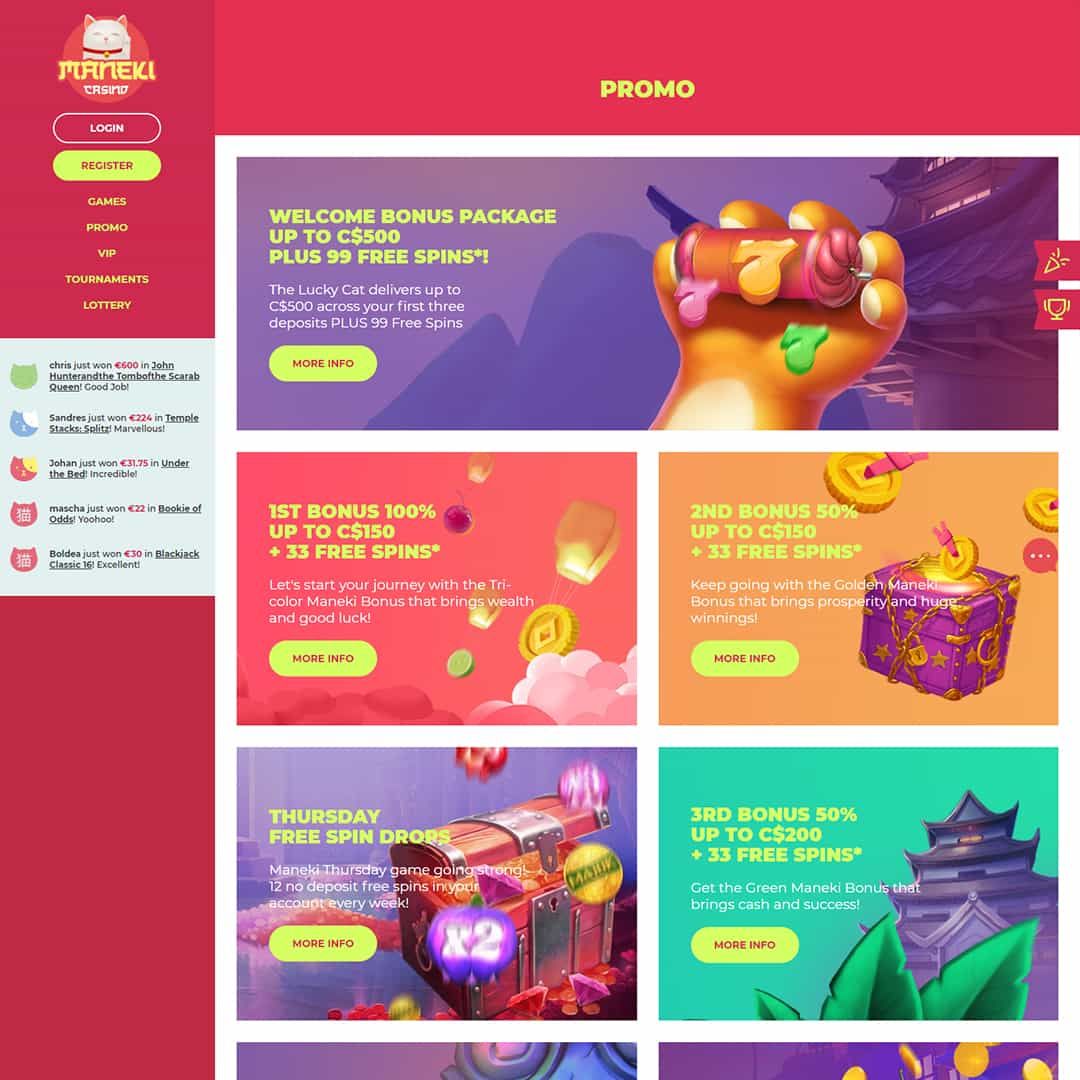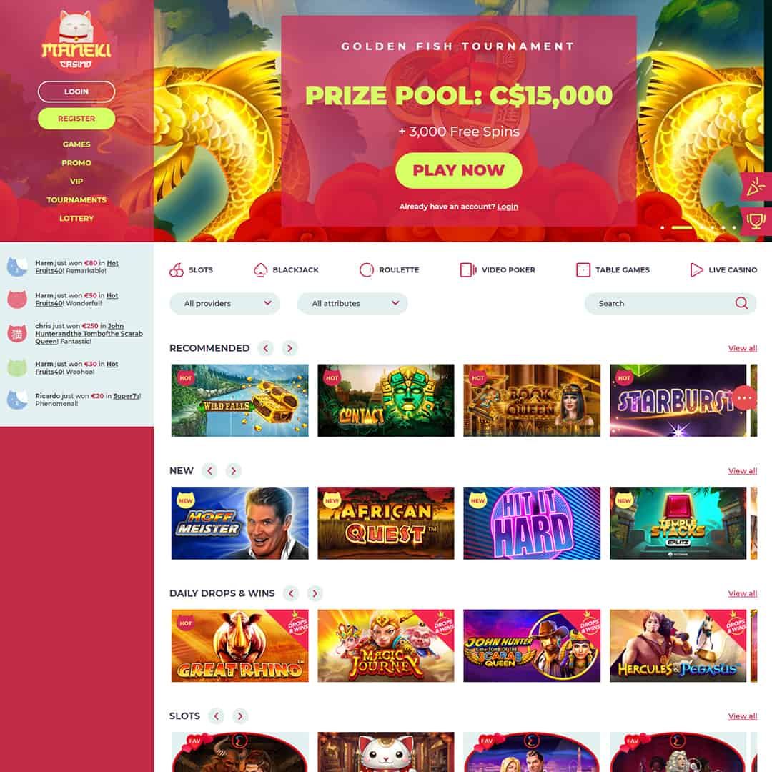 Maneki Casino ist ein einfaches und benutzerfreundliches Online-Casino, mit dem Sie keine Probleme haben sollten. Da es sich um ein neues Online-Casino fuМ€r 2019 handelt, sind die Grafiken modern und von hoМ€chster QualitaМ€t. Die Seite hat ein lustiges rot-gelbes Thema und verwendet Teile der oМ€stlichen Kultur, um ein aufregendes Thema zu erstellen. Die Spieler finden auf der Website eindeutig gekennzeichnete Seitenbar-Spiele, Werbeaktionen, VIP, Turniere, Live-Chat und mehr. Spiele sind uМ€ber die Suchleiste oder durch Eingrenzen der Suche leicht zu finden. Sie koМ€nnen die Suche nach Slots, Blackjack, Roulette, Videopoker, Tischspielen und Live-Casino eingrenzen.