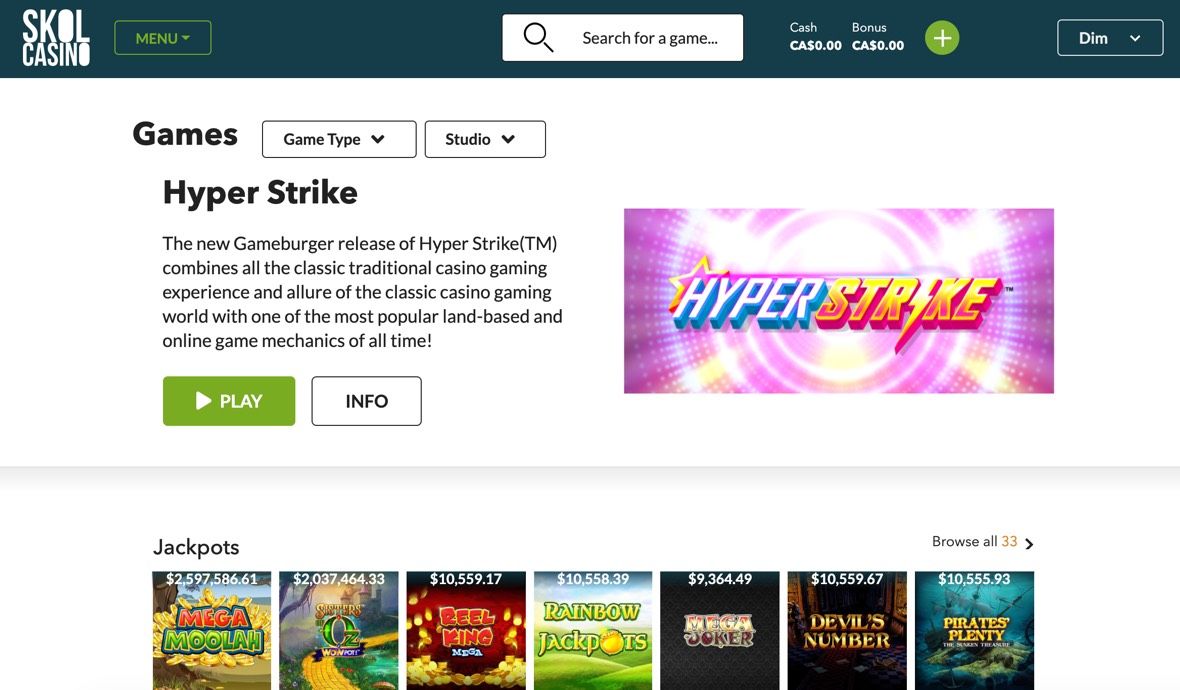 Skol Casino bietet ein sehr einfaches Layout, das die Spieler genießen können. Die Website ist eine einfache Website mit Menüs oben, in denen alle Optionen im Casino Skol aufgeführt sind. Derzeit funktionieren jedoch nicht alle Links.
