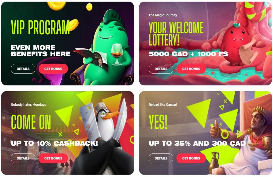 Eine der wichtigsten Funktionen für Spieler ist der Zugang zu einer Reihe verschiedener Boni und Werbeaktionen. Yoju Casino bietet ein ziemlich beeindruckendes Willkommenspaket, das tatsächlich die ersten vier Einzahlungen abdeckt, die Sie tätigen. Insgesamt können Spieler satte 2.000 € plus 100 Freispiele erzielen, die auf diese Einzahlungen verteilt sind. Um jeden dieser Boni in Anspruch zu nehmen, müssen die Spieler jedoch eine Mindesteinzahlung von 30 € tätigen. Jeder der vier Freispielsätze ist für verschiedene Spiele berechtigt, nämlich Avalon: Das verlorene Königreich, Buch der Katzen, Tiefsee und Elvis Frog in Vegas.